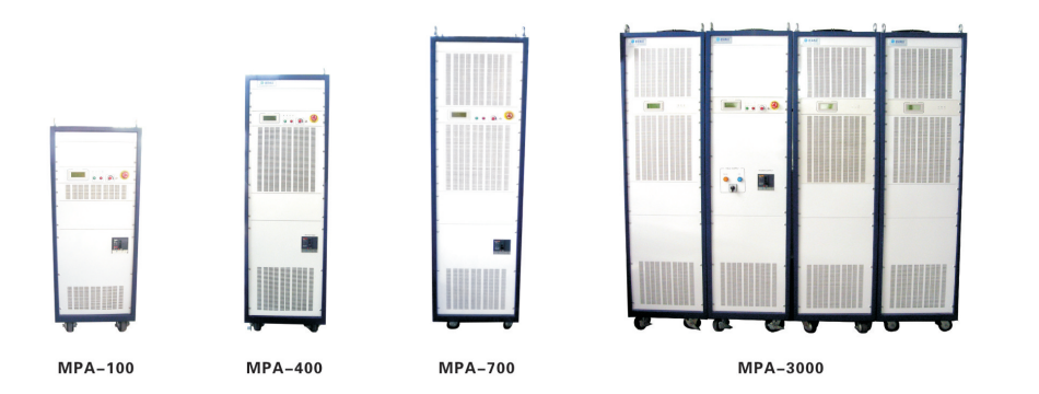 MPA系列功率放大器是采用正弦脈沖寬度調制技術的數字式功率放大器。其工作原理是:利用MOSFET場效應管的高頻開關能力,將控制儀輸入的低電壓信號通過數字電路進行放大并還原成原信號,然后將其輸出至電動振動臺的動圈線路,推動電動振動臺臺面運動。數字式功率放大器的主要組成部分:邏輯模塊盒,功放模塊盒,保護電路,勵磁電源部分和電柜。 MPA功率放大器的輸出范圍為1kVA~1000kVA。系統技術指標完全適用于現有的或新的風冷或水冷型電動振動臺。可用于替換其他廠商同型號的功率放大器。 MPA 系列功率放大器是采用新技術設計的寬頻帶數字開關功率放大器,主要有邏輯模塊、功率模塊、勵磁電源模塊等組成。MPA 系列功率放大器功率器件均采用美國知名公司供貨,質量有保證。 MPA系列功率放大器產品通過歐洲“TUV Rheinland”CE認證.