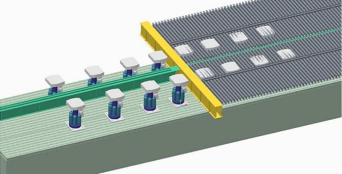 車輛道路模擬試驗系統由液壓作動器及附件、液壓泵源及管路以及氣浮地基等組成。該系統可滿足最大總重120t的8軸特種車輛的整車及部件試驗需求,具備正弦、方波、三角波、隨機、正弦掃頻、實際道路試驗數據產生的時間歷程曲線、頻譜再現、塊狀波循環等波形(譜形)控制能力,可完成整車道路振動環境模擬、疲勞耐久性、動態響應、振動分析、剛度試驗、懸架系統試驗等多種類型試驗。